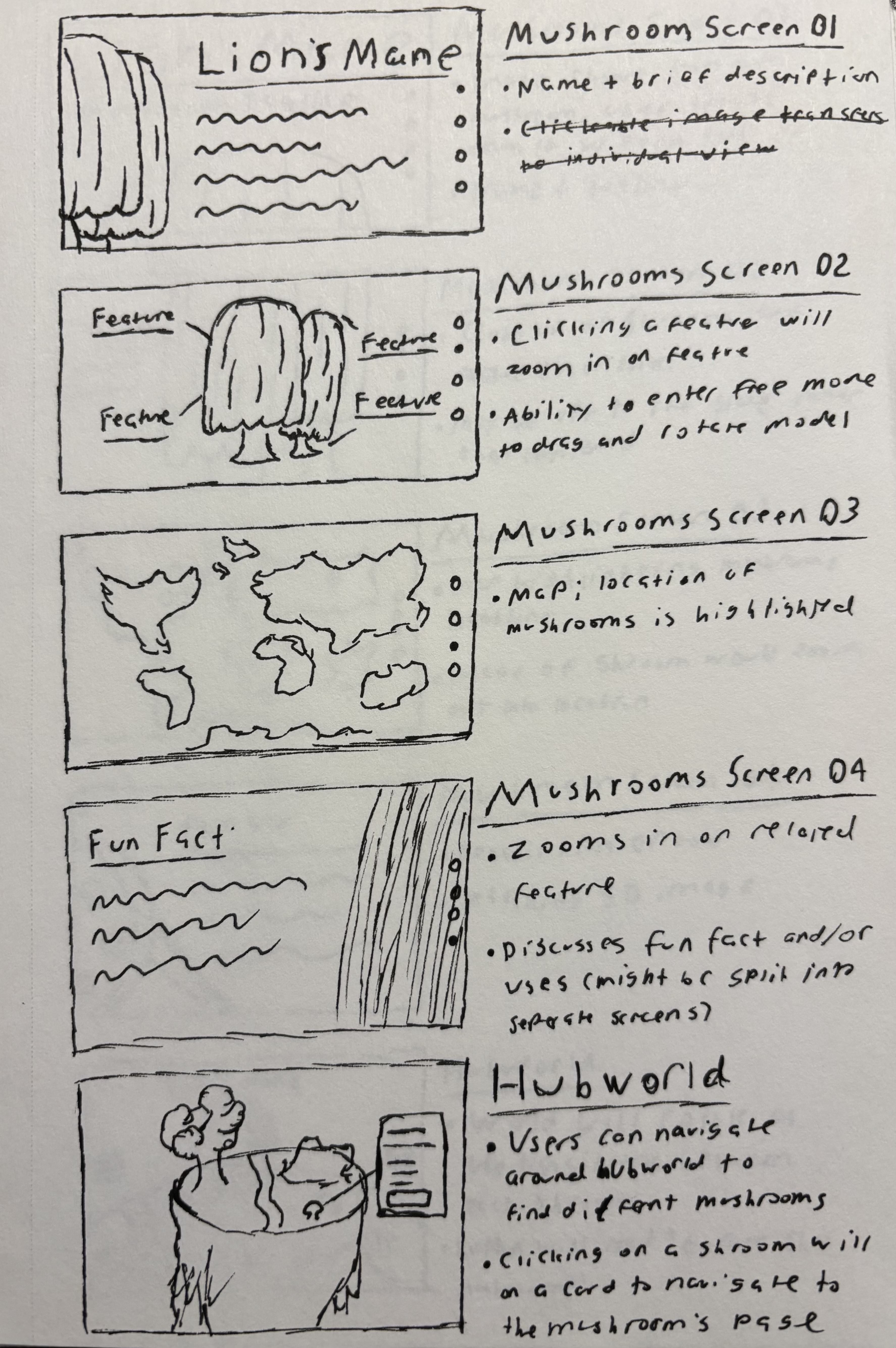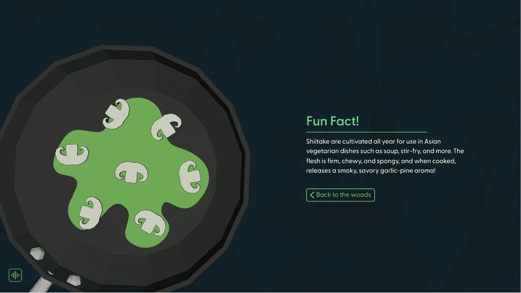 An animated prototype of an interactive website concept designed to to teach users about the interesting uses and characteristics of several different mushrooms through an interactive 3D forest.