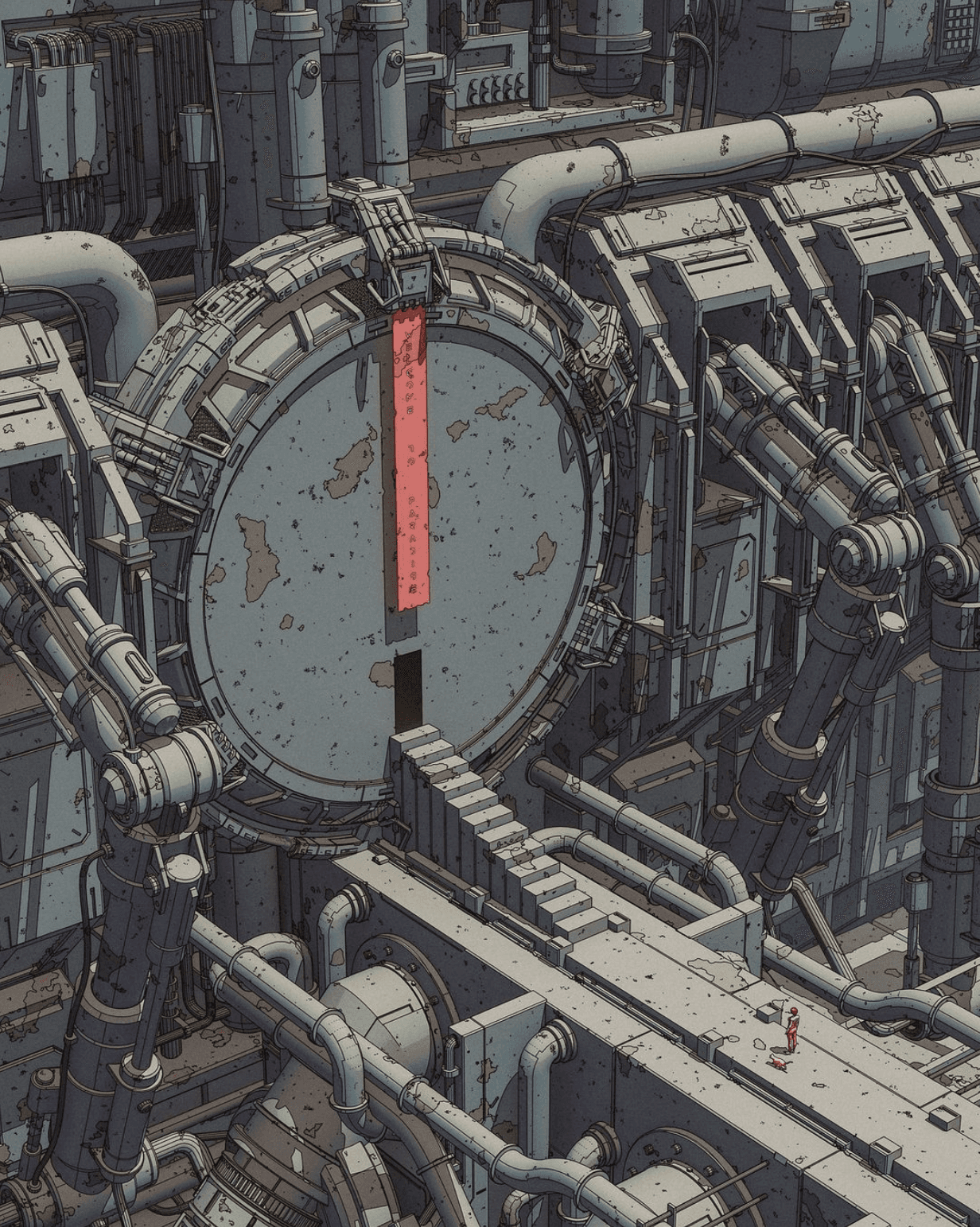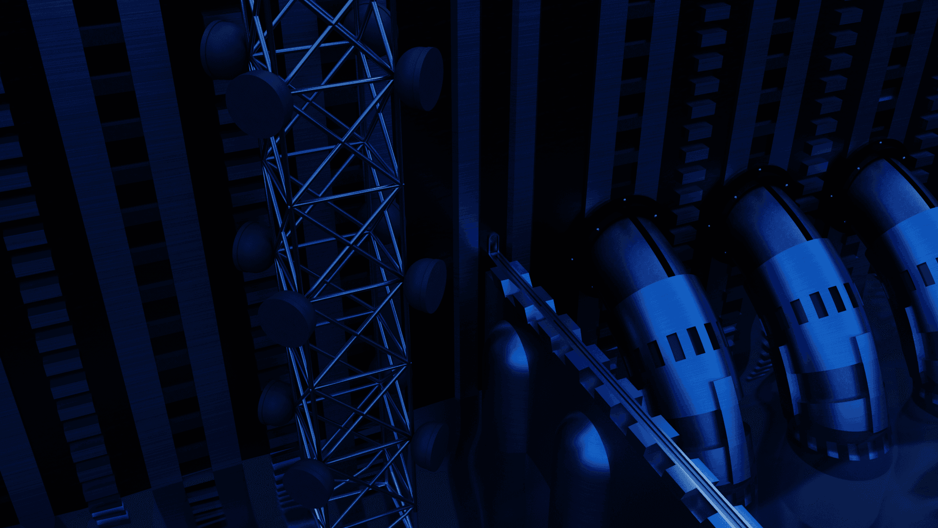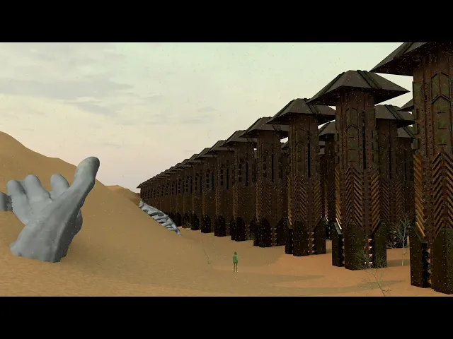 Strange, ambient music paired with otherworldly industrial iconography creates a feeling of unease and wonder.
