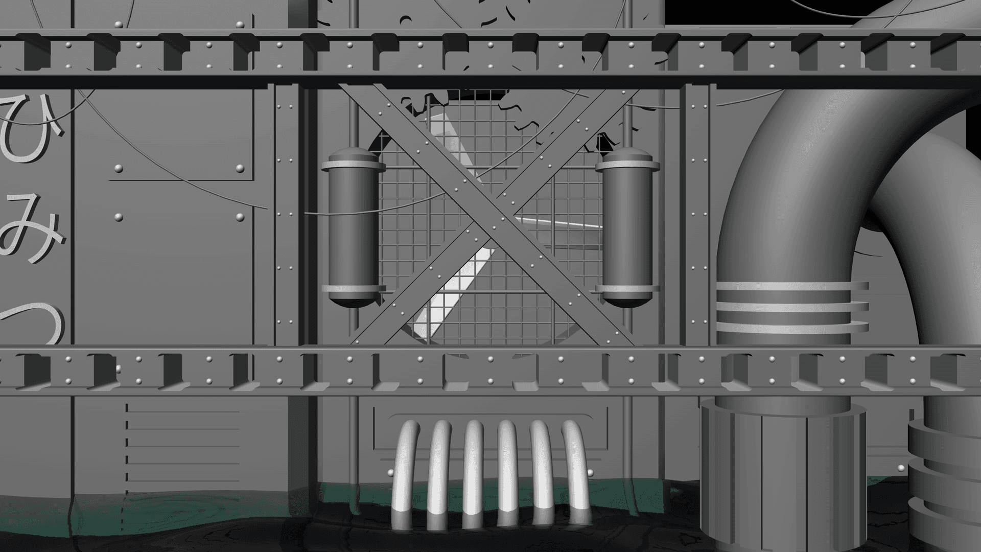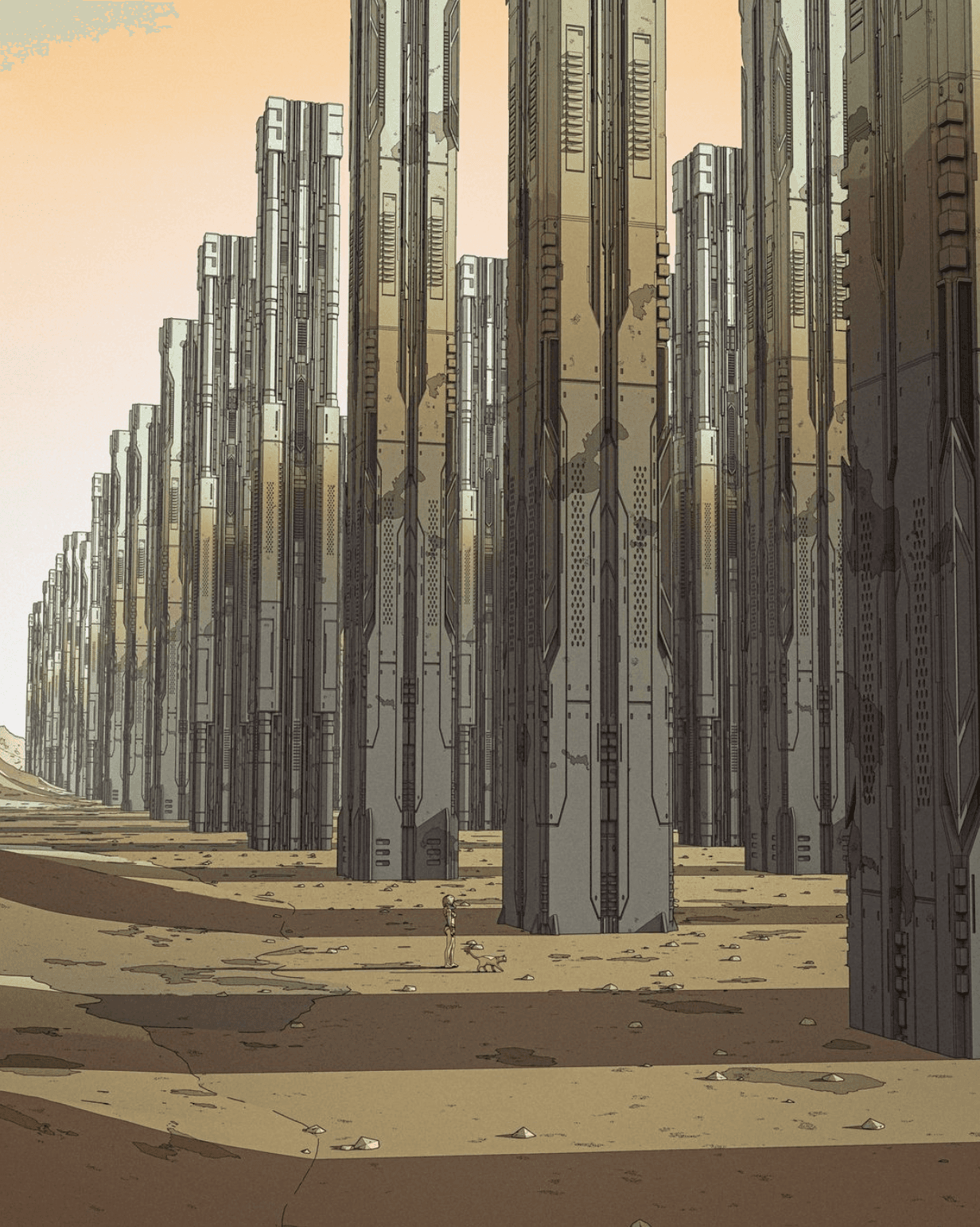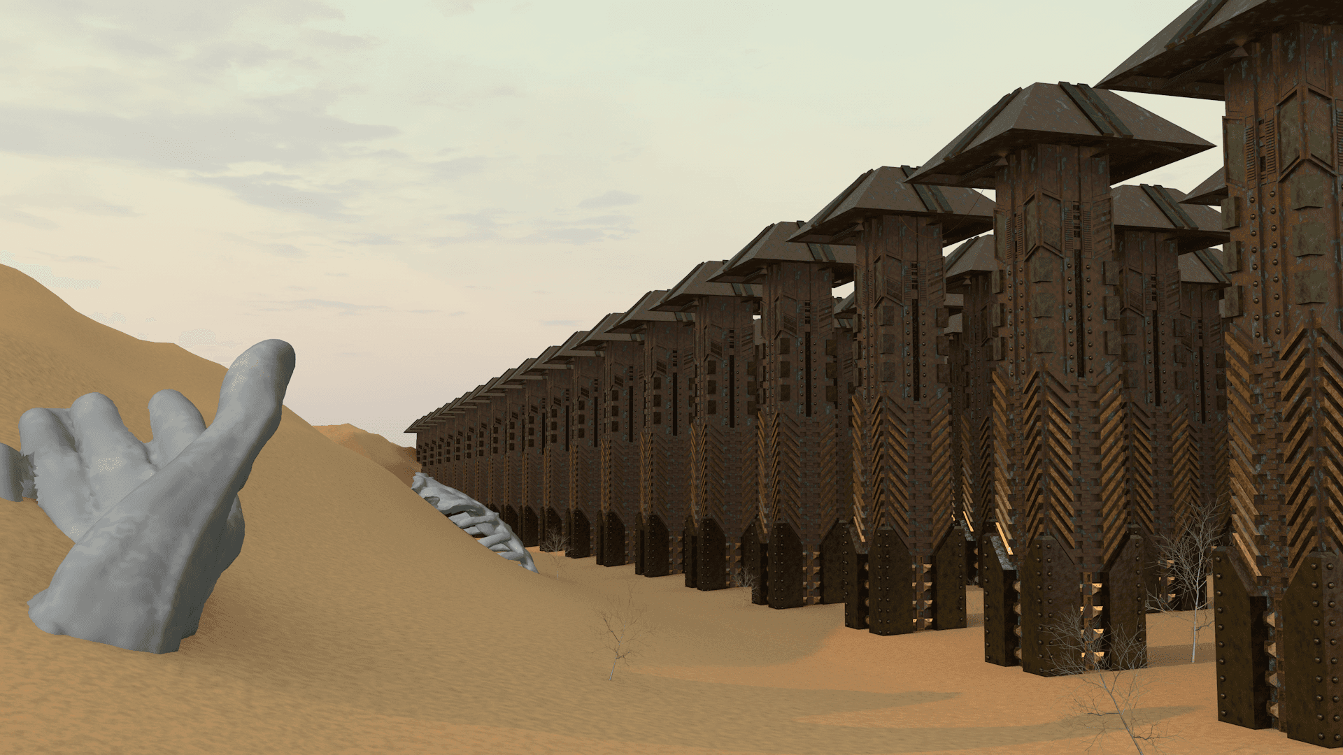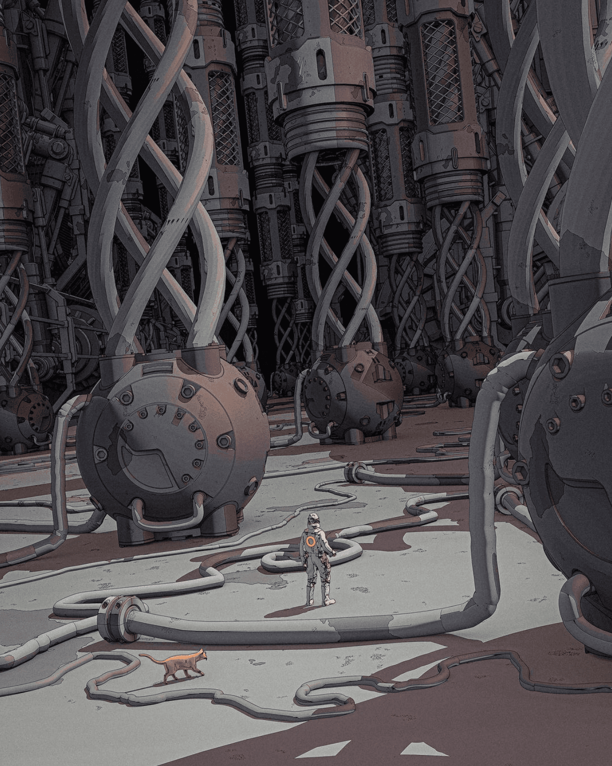 The overall alien industrial style and look of the scenes was heavily inspired by the work of digital artist Darius Puia, also known as BakaArts.