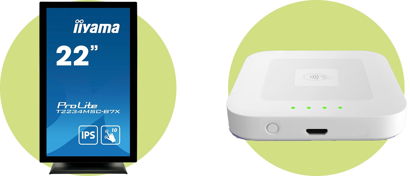 This product was designed to function on an Iiyama ProLite T2234MSC-B7X screen. With a native resolution of 1080x1920, the vertical nature of the screen was designed to resemble the shape of a physical menu.