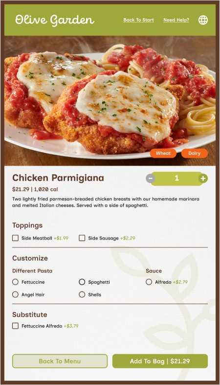 Olive Garden is a casual dining restaurant that specializes in Italian-American cuisine. Due to the chain’s traditional, family-styled values, a typical sit-down meal at Olive Garden is very organized, with a structured ordering flow facilitated by direct interaction between server and customer.